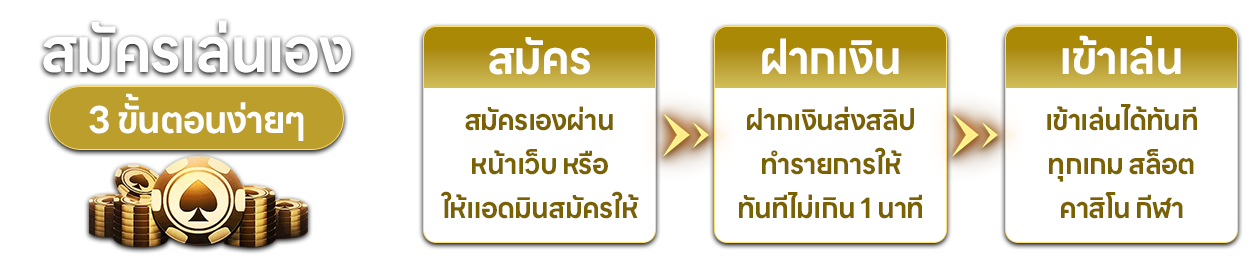 ตอบ : - สมัครผ่านหน้าเว็บไซต์หรือไลน์แอด กรอกข้อมูลส่วนตัวและบัญชีธนาคาร รอรับ Username/Password ใช้เวลาไม่เกิน 5 นาที เริ่มเดิมพันได้ทันที